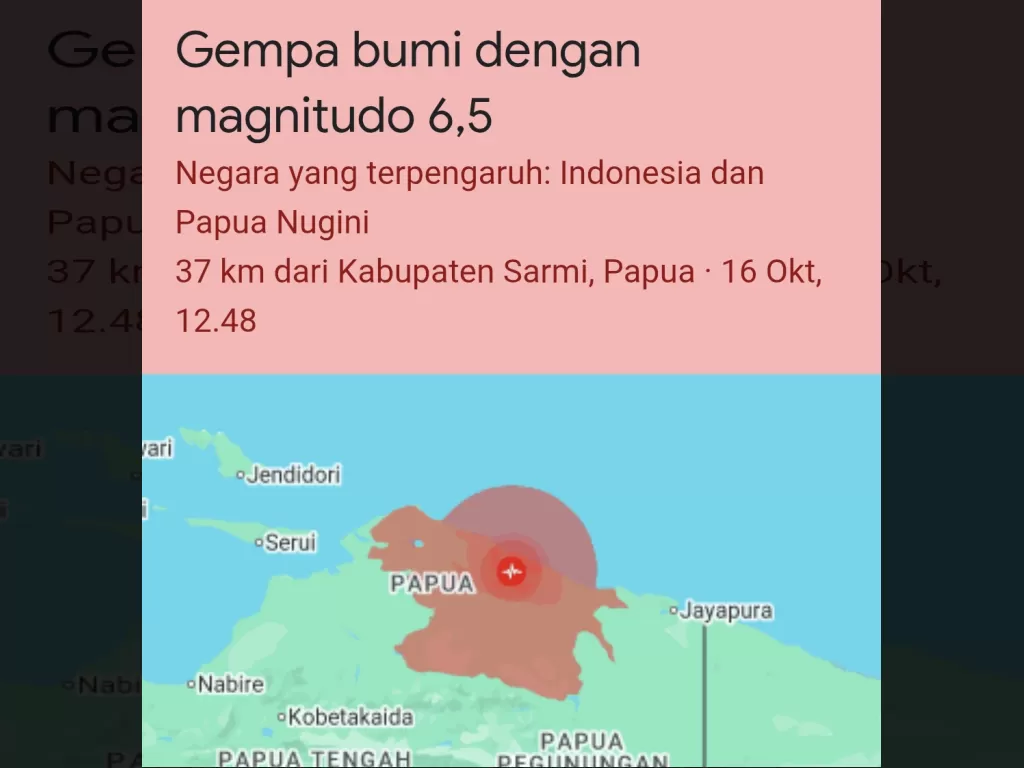Gempa Magnitudo 4,4 Guncang Sarmi, Papua di Dini Hari